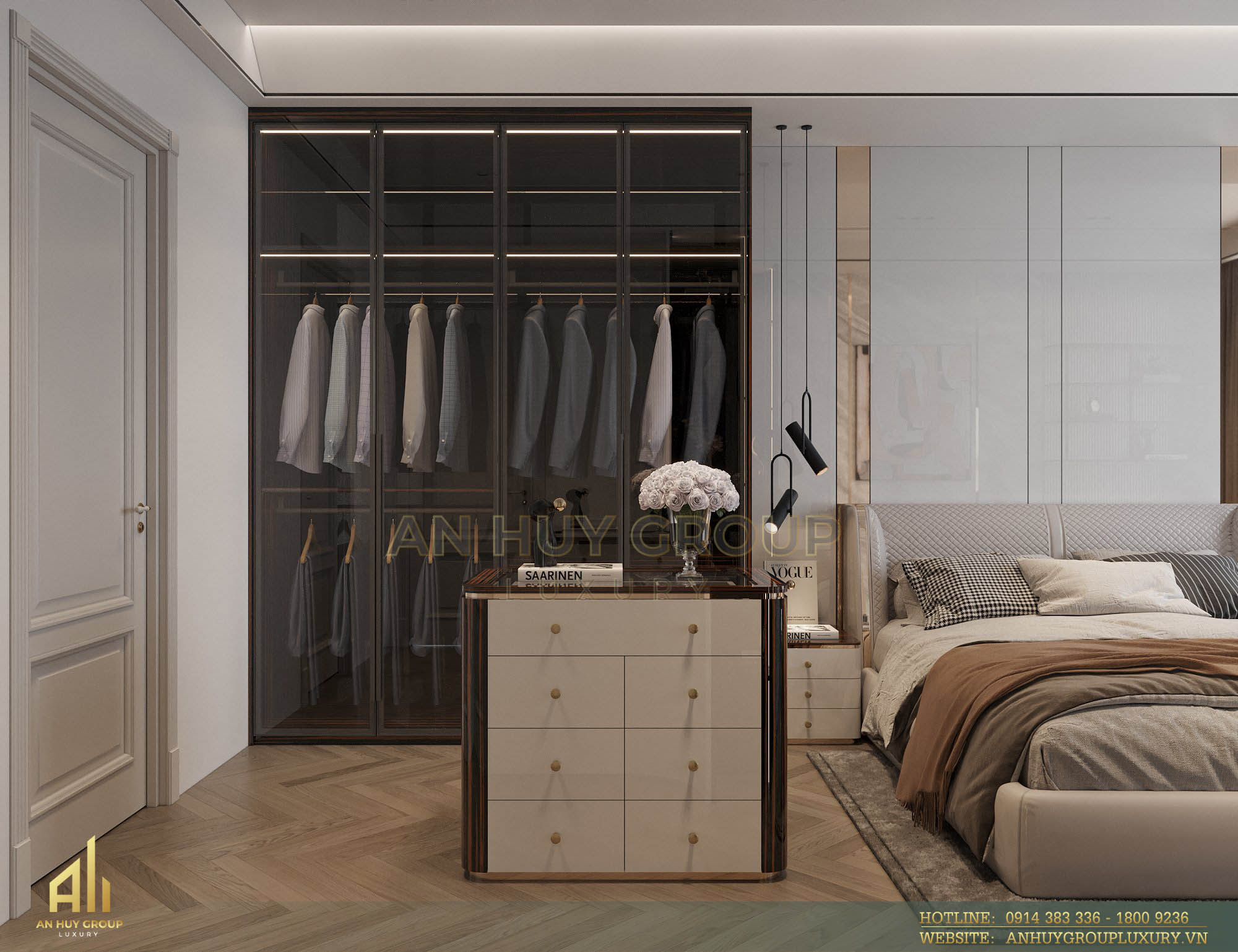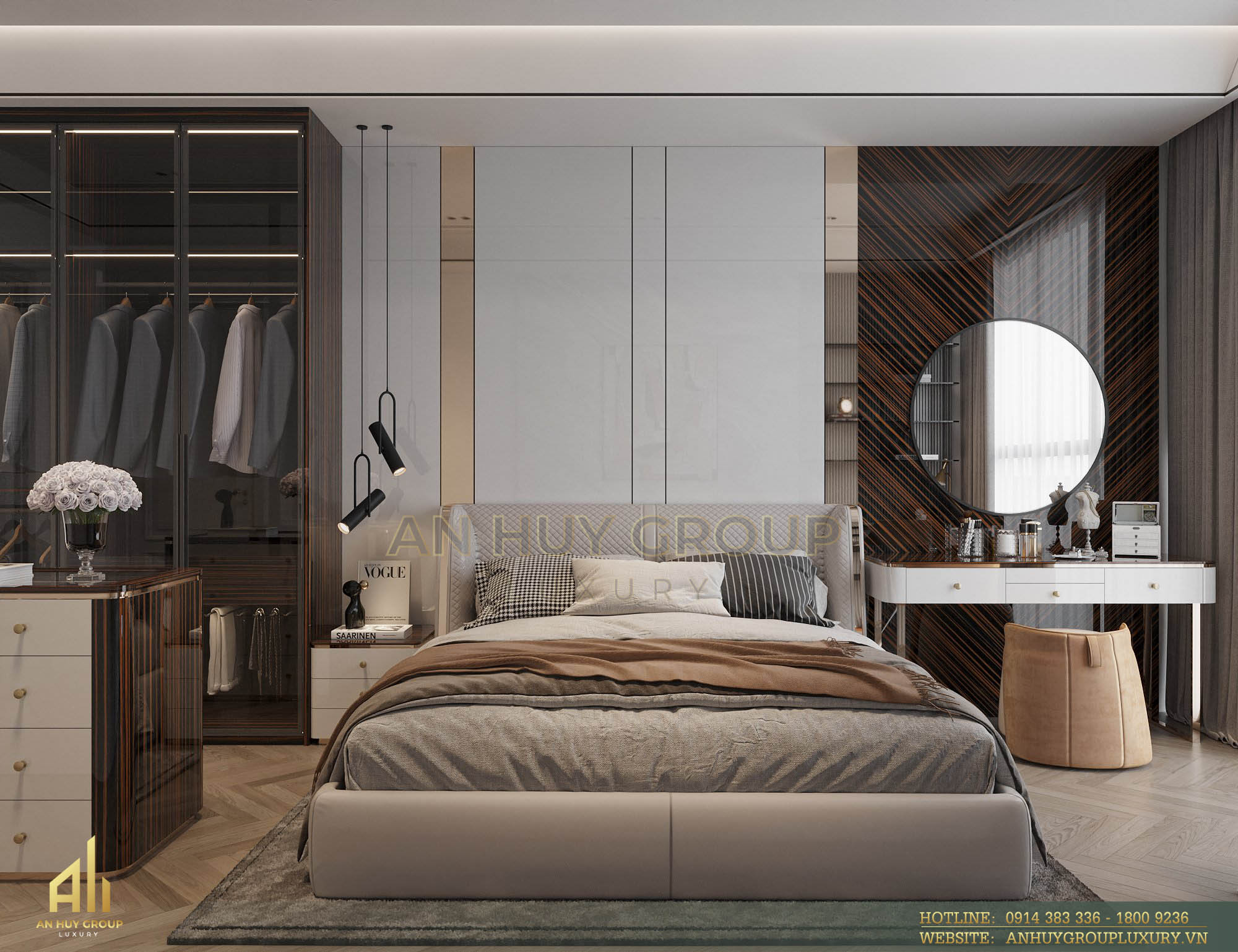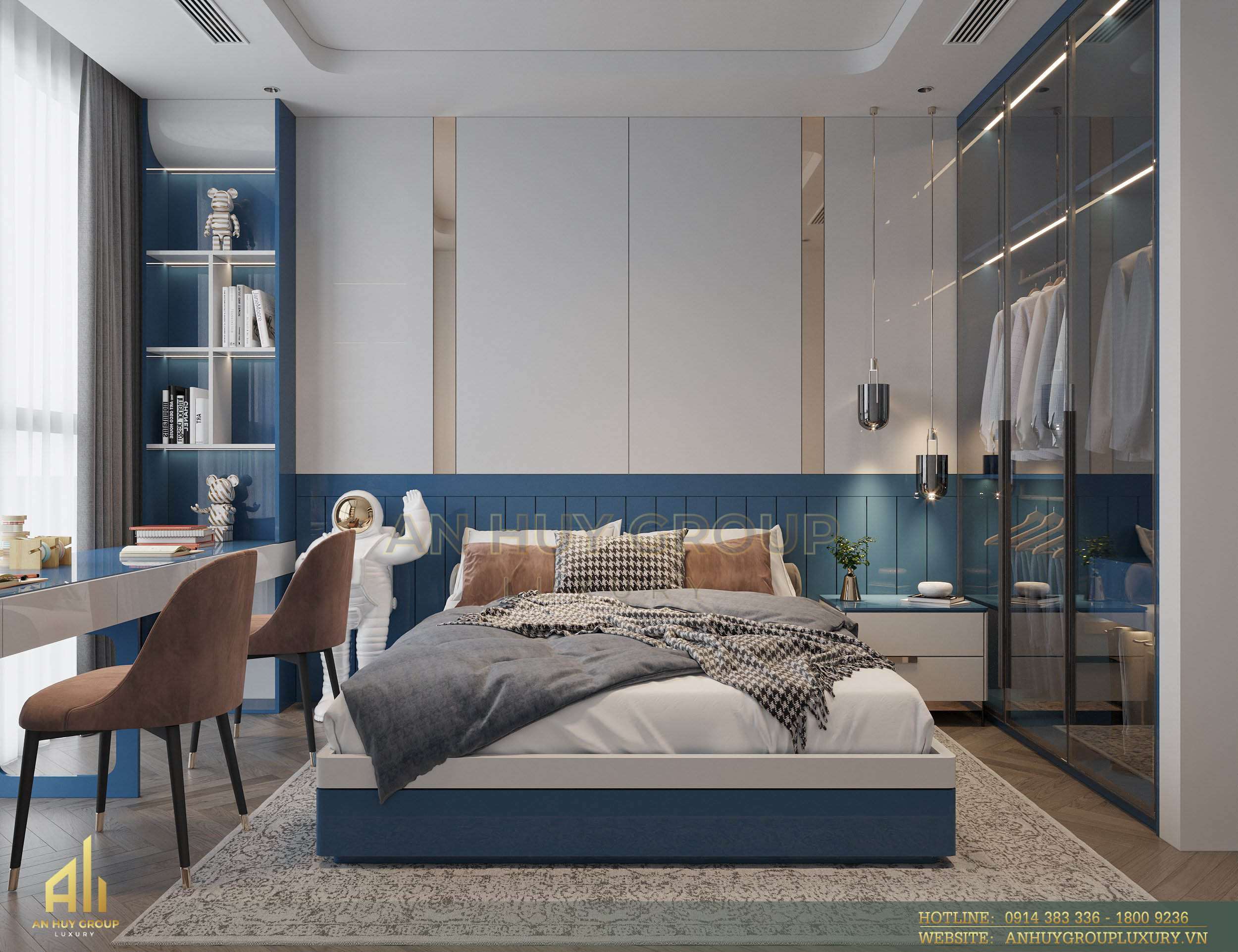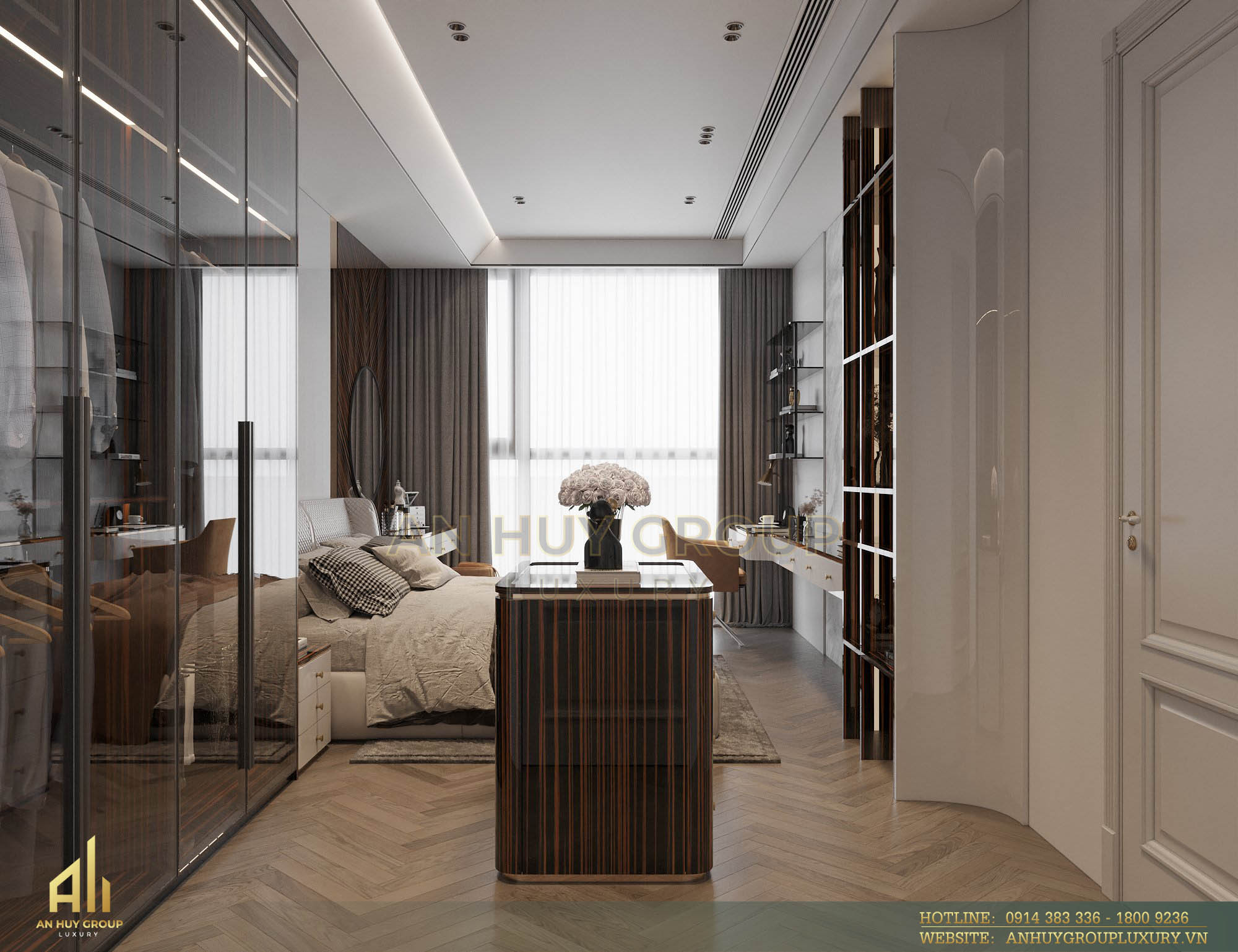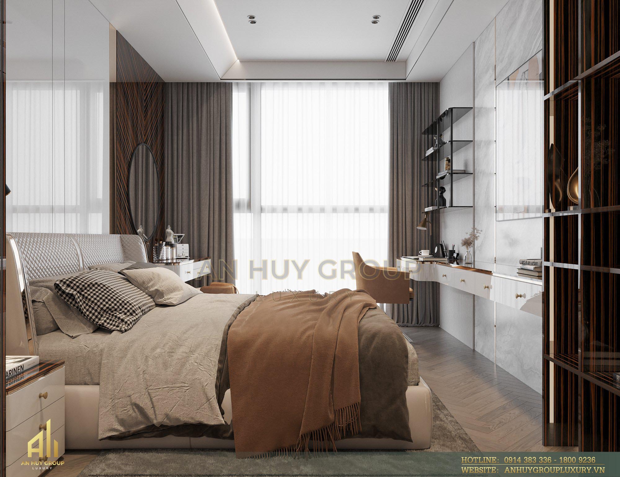 Với số lượng 4 phòng ngủ, đội ngũ chuyên gia thiết kế nội thất An Huy Group Luxury đã lên ý tưởng và chọn lựa vật liệu không chỉ đáp ứng tốt tính thẩm mỹ mà còn tối ưu công năng cho từng phòng.